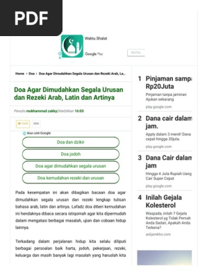 Doa Agar Dimudahkan Segala Urusan Dan Rezeki Arab Latin Dan