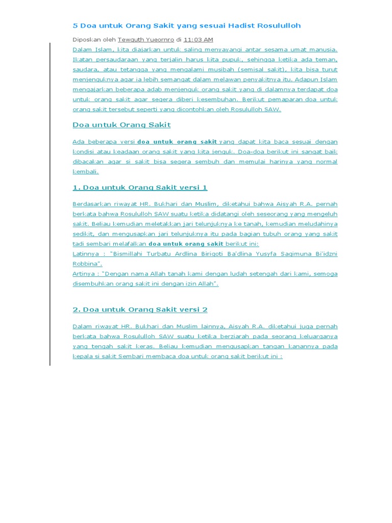 5 Doa Untuk Orang Sakit Yang Sesuai Hadist Rosululloh Docx